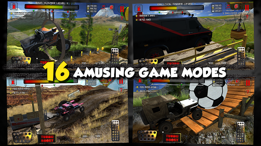 Uma enorme categoria diferente de carro, – escaladores de montanha, offroads, monters, caminhões, vans, bikes- está esperando por você para correr. Vamos rolar no sobe e desce com o seu carro favorito.